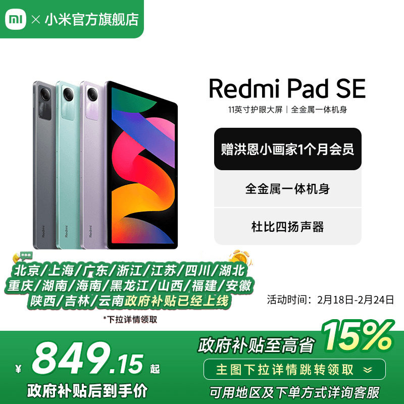 【政府补贴至高省15%】Redmi Pad SE 红米平板se电脑系列高刷高清全面屏 国产安卓平板电脑小米官方旗舰店