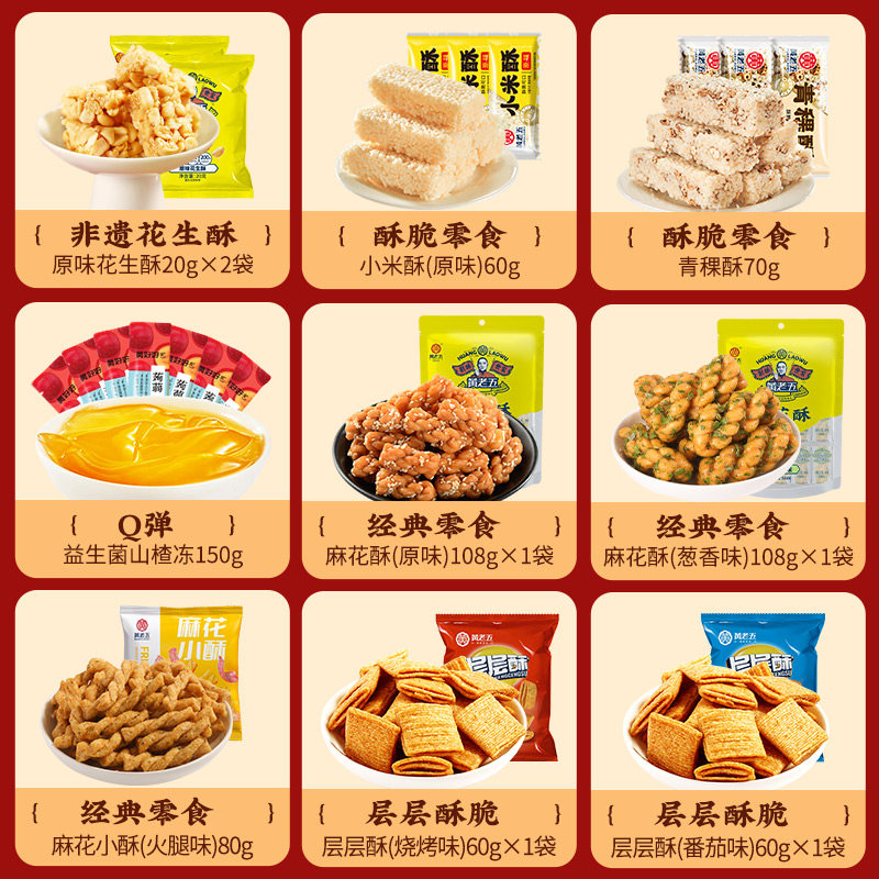 黄老五大礼包五福有礼736g四川特产花生酥米花糖小米酥麻花锅巴