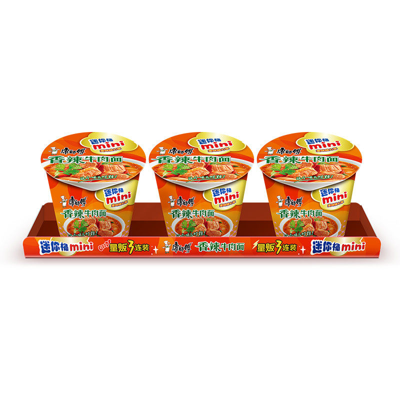 康师傅方便面迷你桶香辣牛肉面60g*3杯泡面速食面即食面