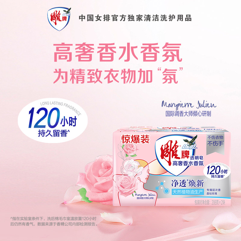 雕牌高奢香水香氛透明皂206g*2洗衣皂深层洁净 内裤除菌肥皂