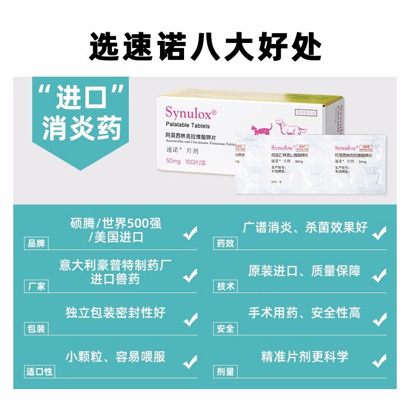 速诺阿莫西林克拉维酸钾消炎片感冒药猫鼻支咳嗽猫咪猫狗通用狗狗