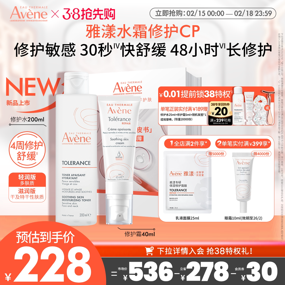 【38节抢先购】雅漾专研修护霜舒缓泛红面霜敏肌高保湿滋润avene
