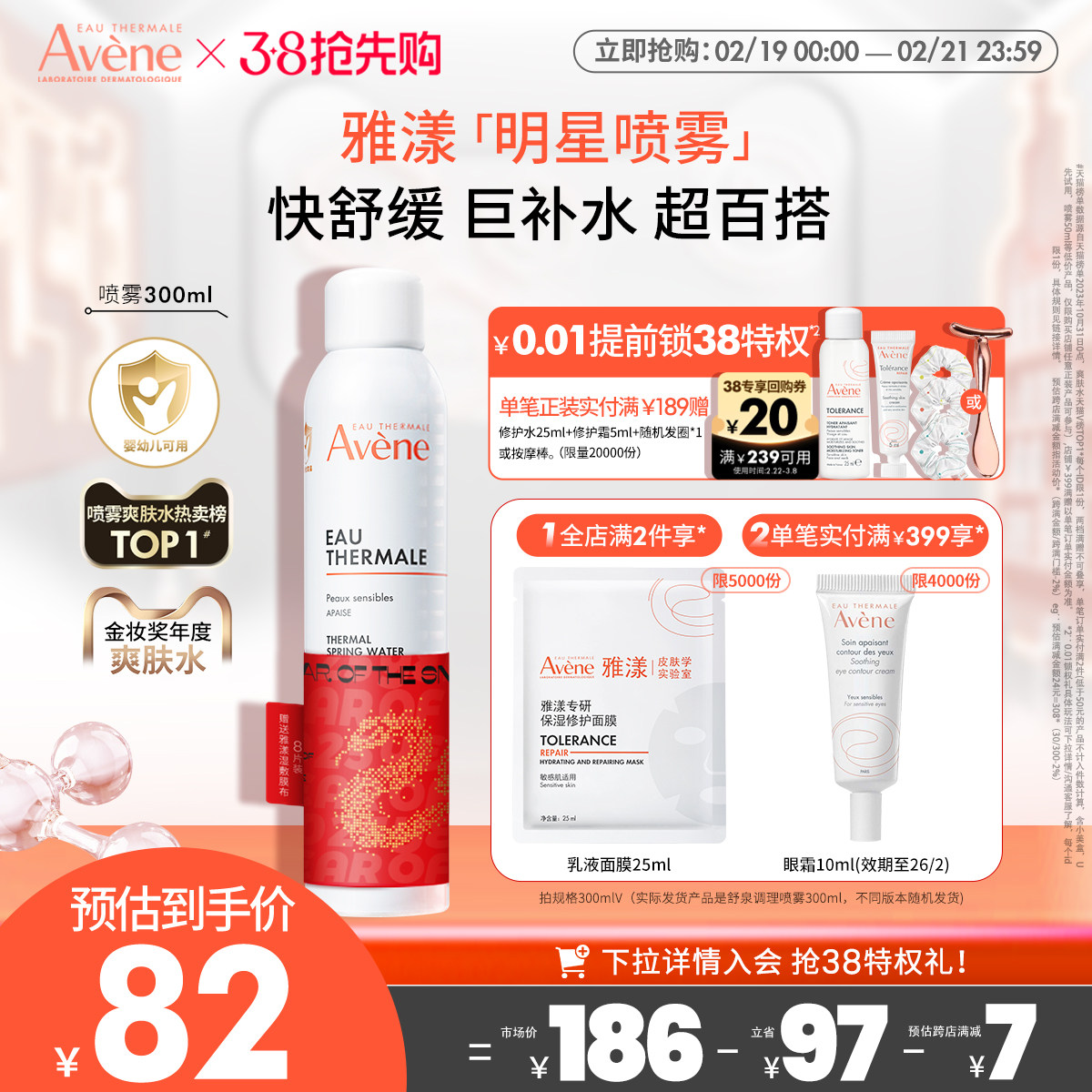 【38节抢先购】雅漾舒泉调理喷雾补水保湿舒缓爽肤水敏感肌化妆水