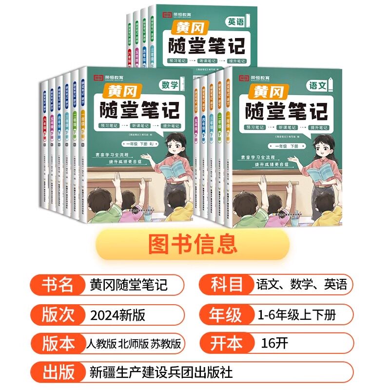 荣恒2025新版黄冈随堂笔记人教版一二年级三年级下册四五六年级下语文数学英语课本全套黄岗小学学霸课堂笔记教材全解预习书上册下