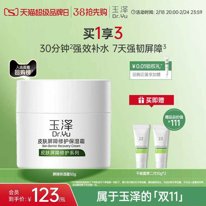 【38抢先购】玉泽皮肤屏障修护保湿霜干敏肌补水改善泛红滋润面霜