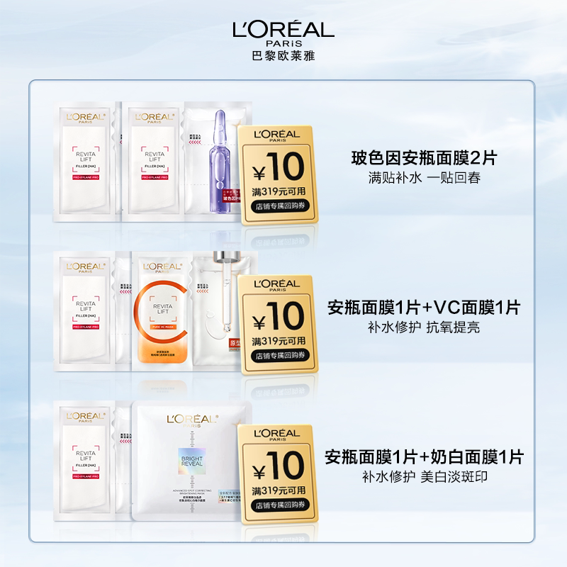 【百补】欧莱雅玻色因安瓶面膜玻尿酸补水保湿修护抗老护肤品
