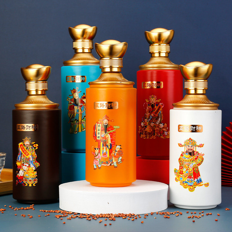 白水杜康洞藏五路财神白酒52度浓香型500ml*5瓶手提礼盒整箱送礼
