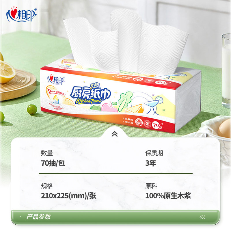 【直播推荐】心相印厨房抽纸XL码2层70抽12包大张厨房专用吸油纸