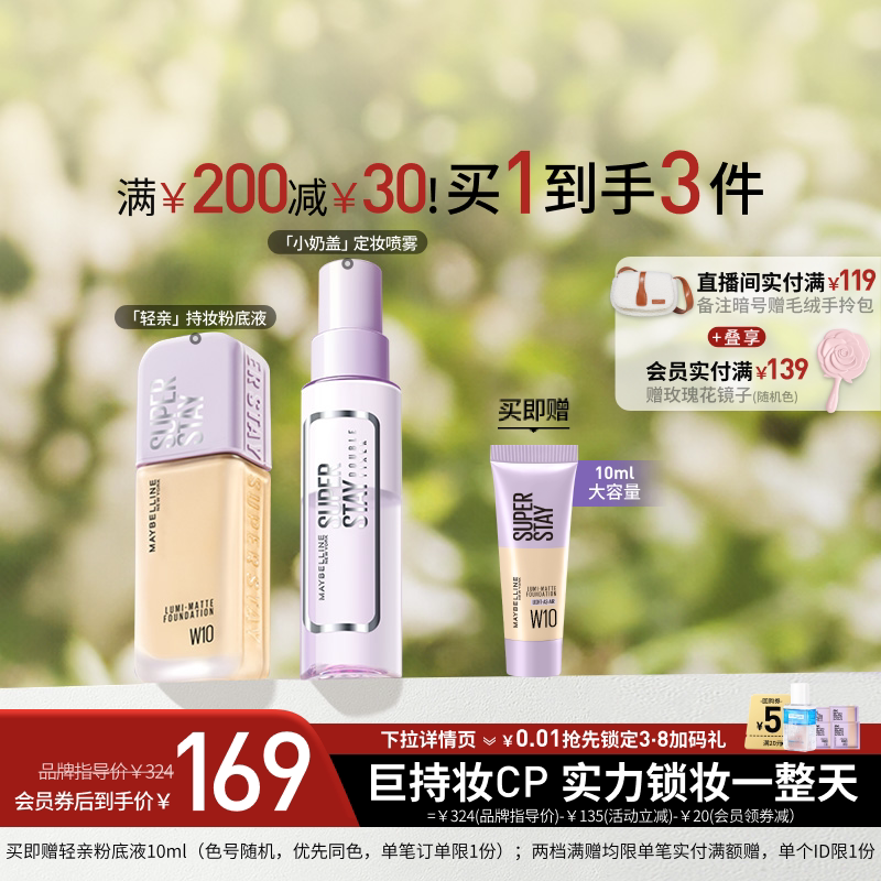 【38礼遇季】美宝莲轻亲粉底液轻薄控油遮瑕持妆持久不脱妆混油Z