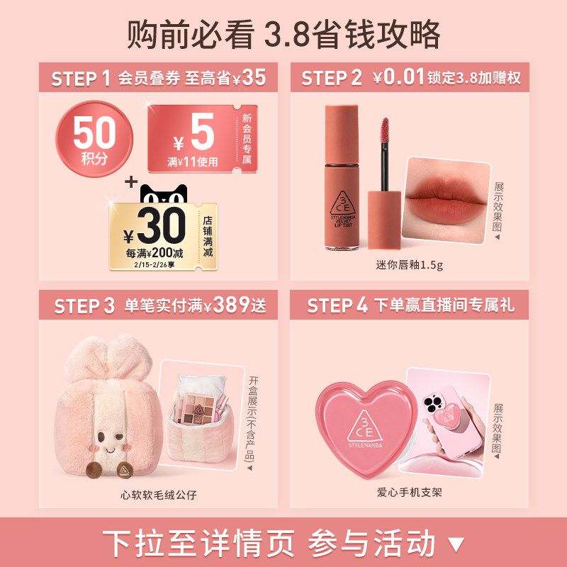 【38礼遇季】3CE单色腮红 小方块膨胀收缩高光修容多用官方女生