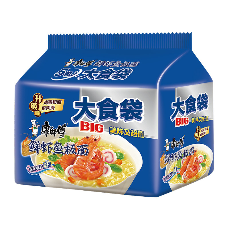 康师傅方便面大食袋鲜虾鱼板面139g*5袋装泡面速食面即食面
