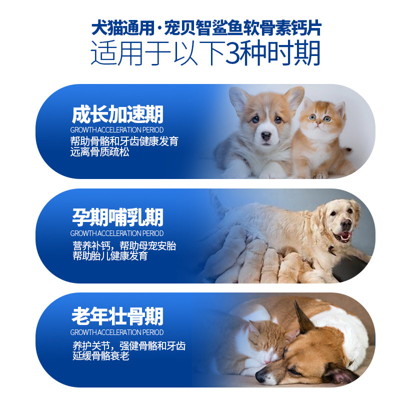 宠贝智鲨鱼软骨素钙片中大型老年幼犬宠物狗狗猫咪专用关节营养片