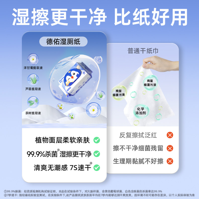 【淘金币大额抵】德佑湿厕纸80抽家庭装湿厕巾男女士专用