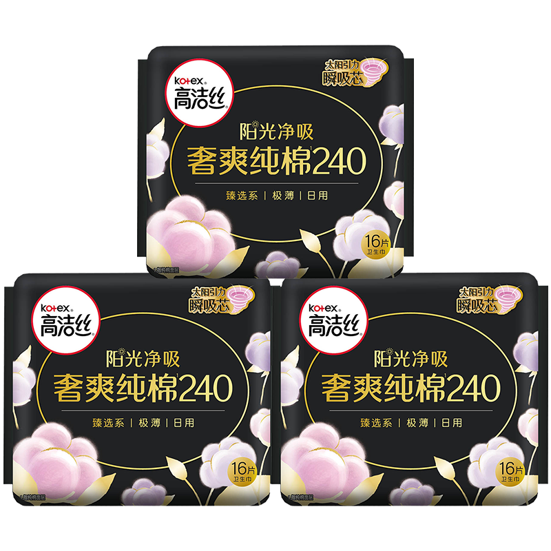 【下拉享补贴价26元】高洁丝阳光奢爽纯棉240mm*48片卫生巾姨妈巾