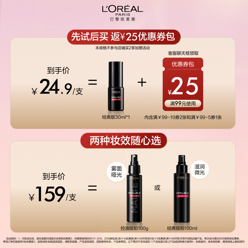 【情人节礼物】欧莱雅定妆喷雾控油版长效持妆不脱妆成膜快油皮