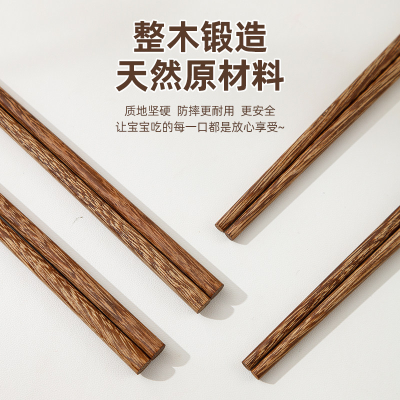 广意儿童筷子鸡翅木筷子家用可爱儿童筷2双装无漆无蜡短木筷