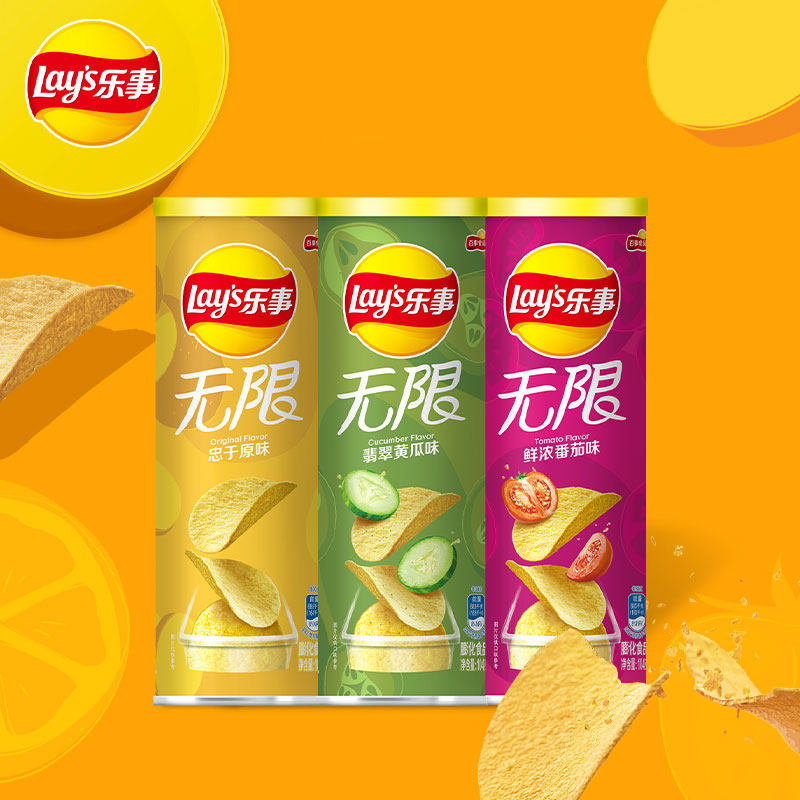 乐事无限薯片(原味/黄瓜/番茄)104g*3罐零食小吃