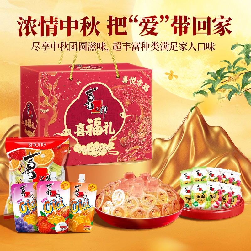 喜之郎喜福礼盒1688g/17袋果冻海苔儿童零食大礼包中秋过节送礼