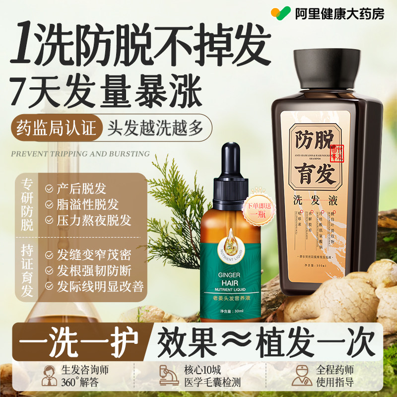 侧柏叶生姜洗发水防脱生育发固增密发控油蓬松官方正品牌洗头膏露