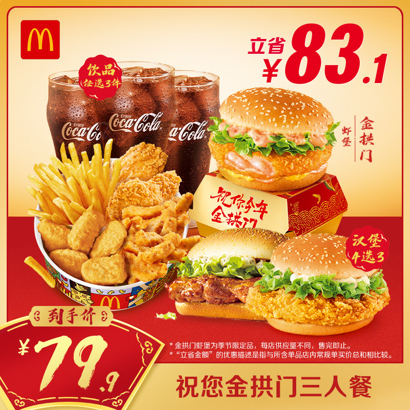 麦当劳 祝您金拱门三人餐 单次券 【下拉详情有惊喜】