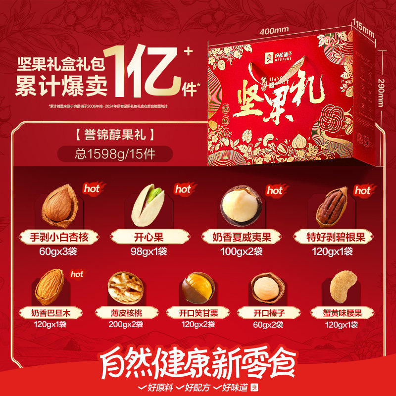 良品铺子坚果礼盒14袋/1868g新年货大礼包送长辈过年走亲戚干果礼