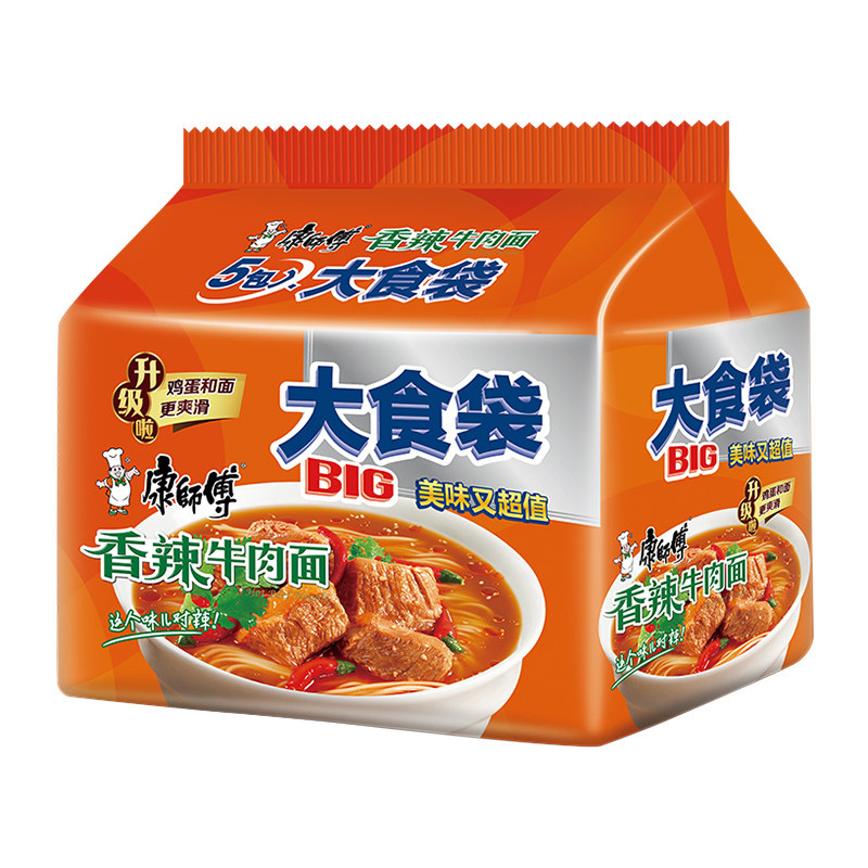 康师傅方便面大食袋香辣牛肉面120g*5袋泡面速食面即食面