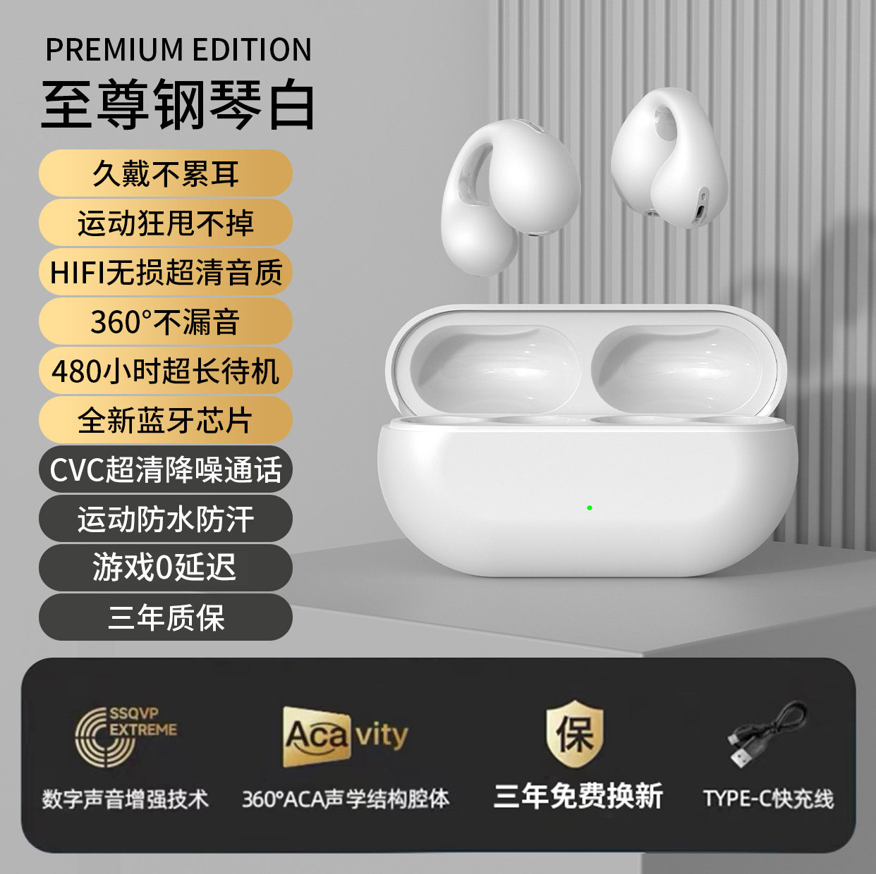 蓝牙耳机2024新款无线气骨传导耳夹式不入耳男女适用苹果华为小米