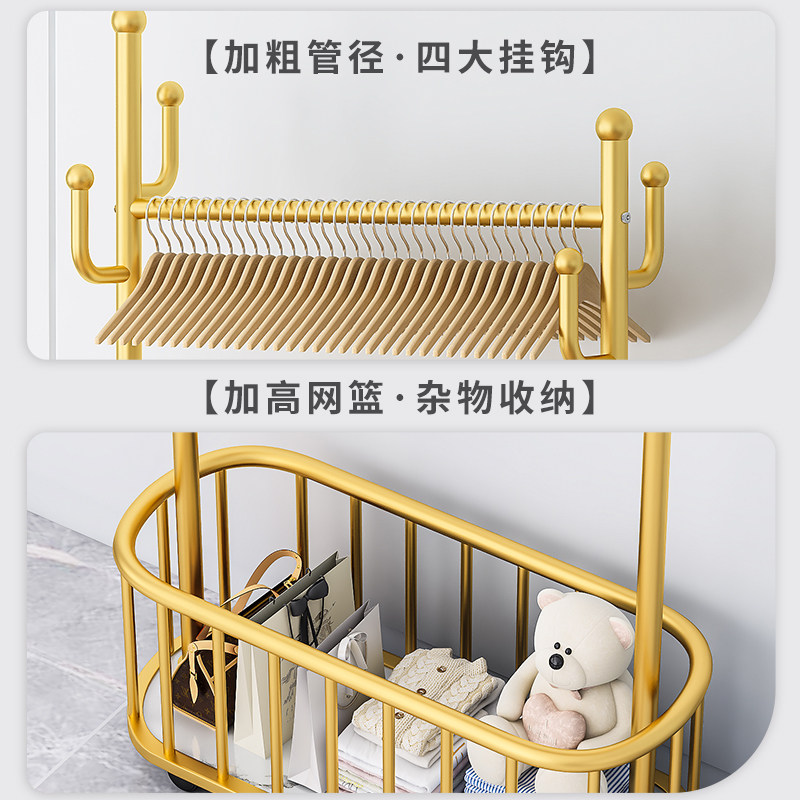 衣架落地卧室挂衣架可移动家用衣帽架室内简易轻奢晾衣服架子加粗