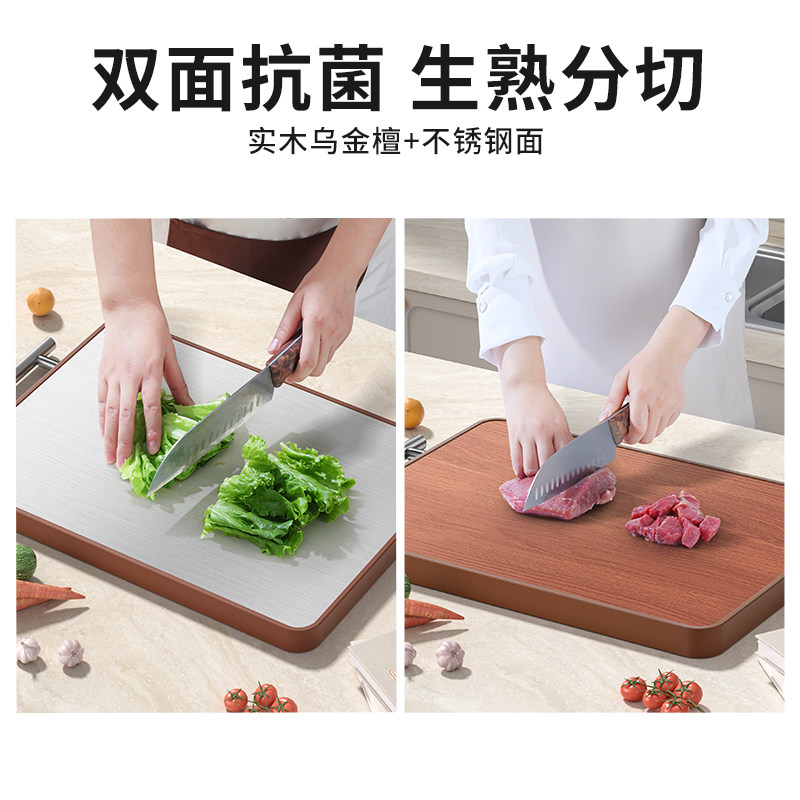 乌檀木菜板抗菌防霉家用不锈钢砧板占实木刀板粘板切菜板双面案板