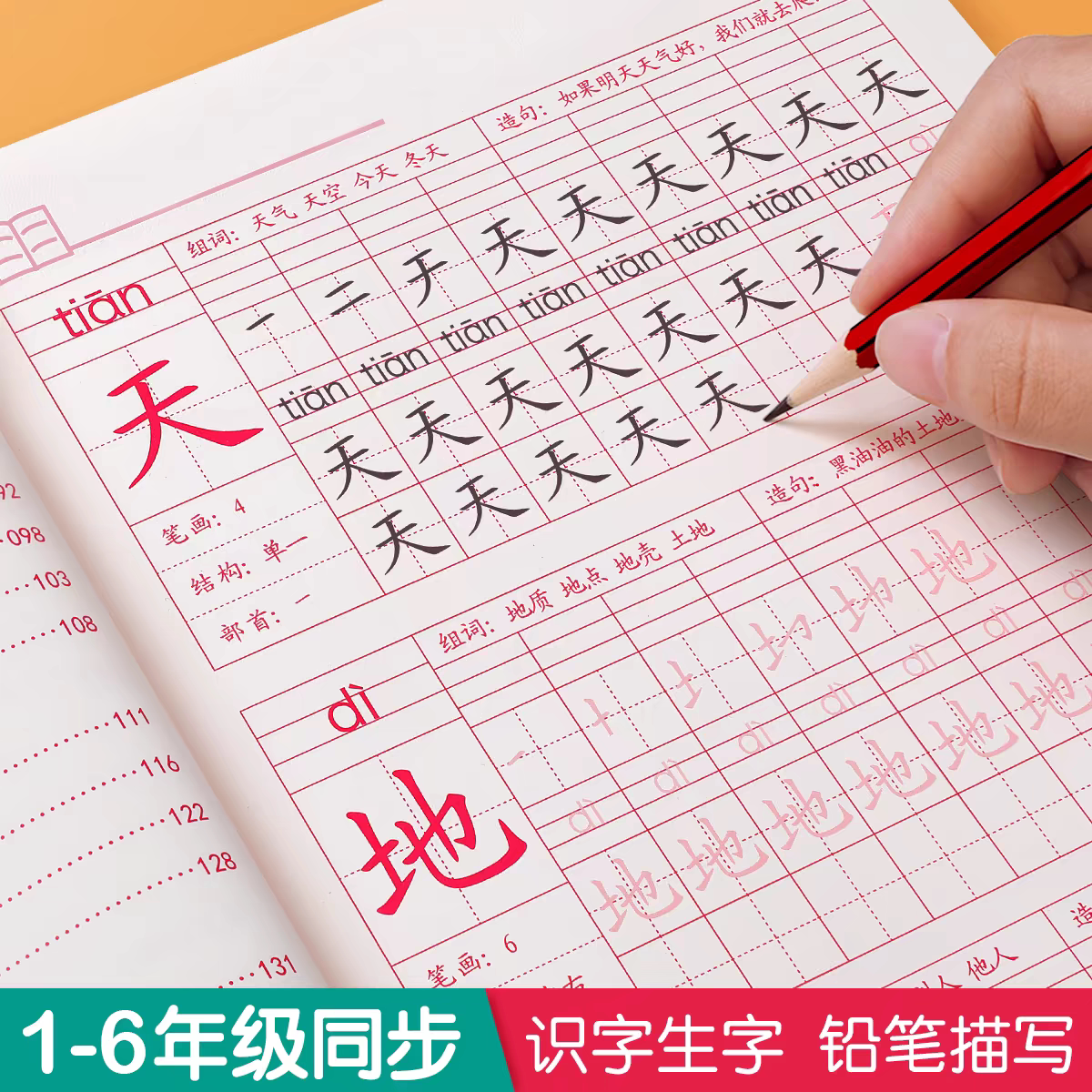 一年级练字字帖二年级上册下册练字帖三四五六年级小学生专用描红本楷书笔画笔顺每日一练语文生字同步人教版练习贴写字硬笔书法本