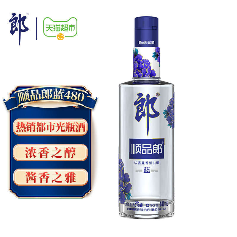 郎酒顺品郎蓝顺浓酱兼香型白酒45度480ml*1瓶粮食酒聚餐自饮
