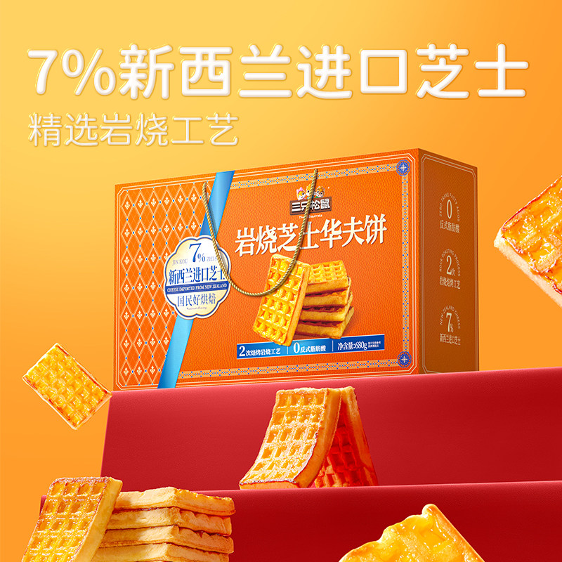 三只松鼠_黄油华夫礼盒750g 营养代餐面包糕点心整箱囤货送礼