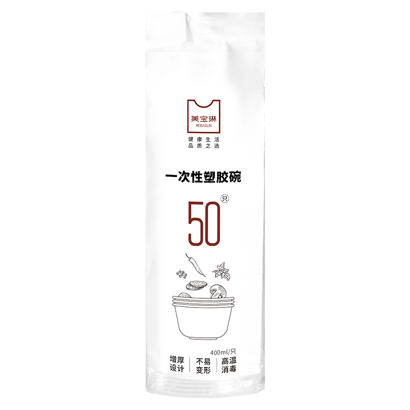 美宝琳一次性碗打包餐盒50只家用冰粉专用碗商用圆形小汤碗筷餐具