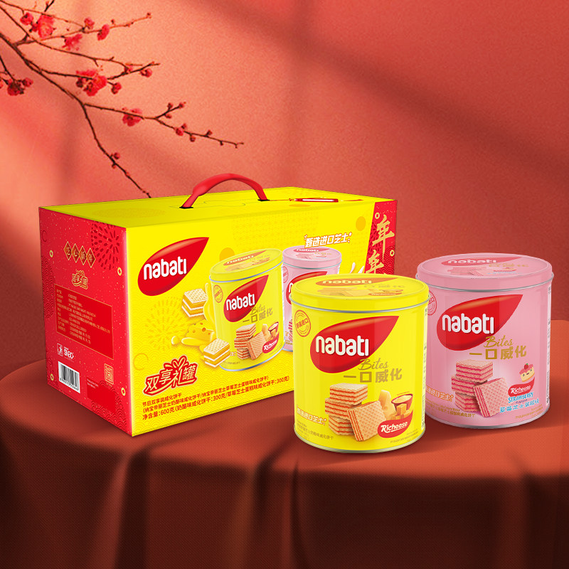 进口纳宝帝丽芝士节日双享装威化饼干年货礼盒