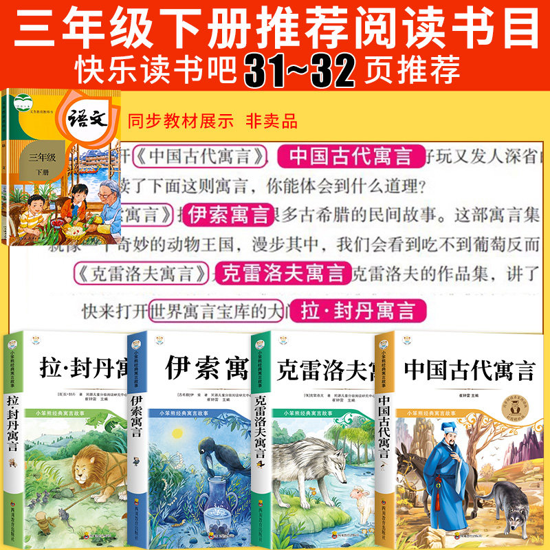 全套4册 中国古代寓言故事三年级下册必读正版的课外书快乐读书吧小学3三年级下学期阅读书籍伊索寓言克雷洛夫拉封丹全集精选书目
