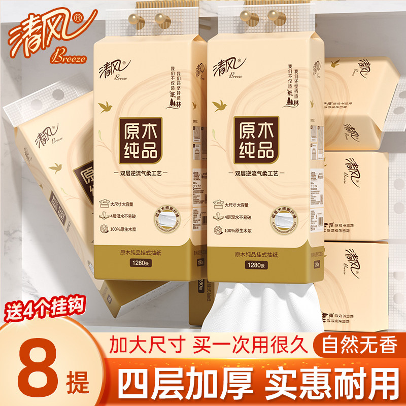 清风8大提抽纸悬挂式纸巾餐巾纸家用整箱实惠装卫生纸厕纸擦手纸