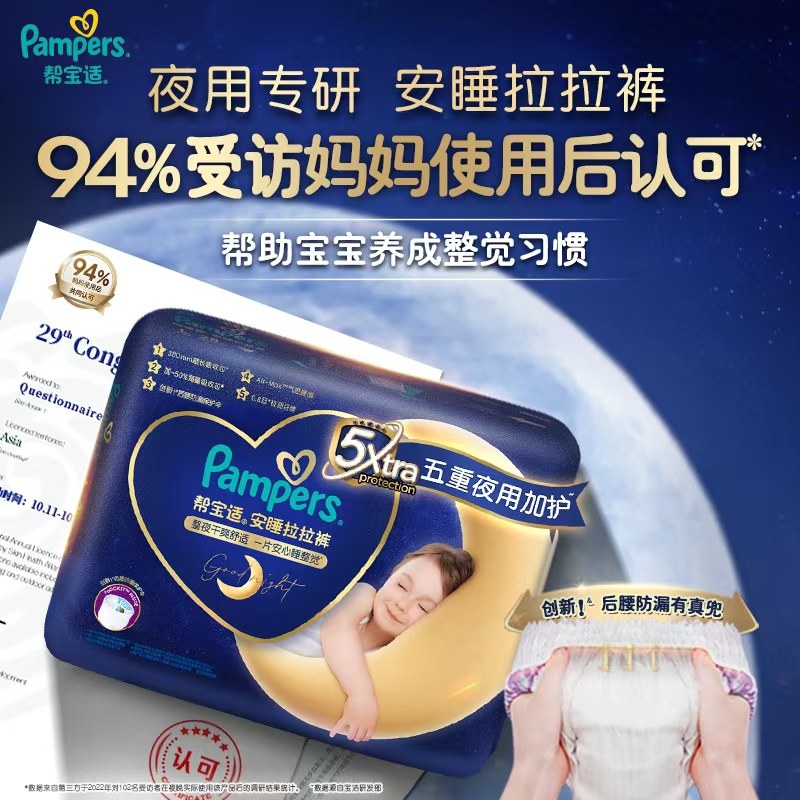 帮宝适夜用安睡拉拉裤L-3XL试用超薄干爽透气裤型纸尿裤