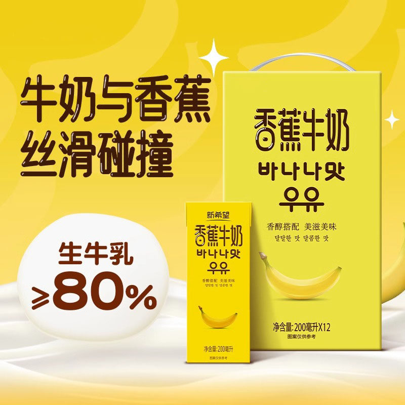 【新日期】新希望香蕉牛奶200ml*12盒风味奶整箱含生牛乳调制乳
