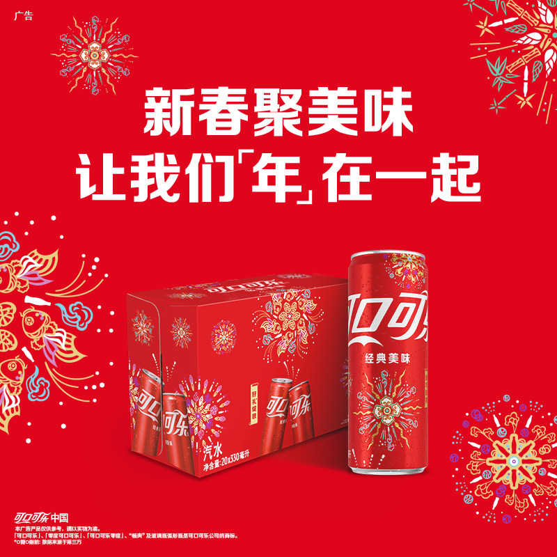 可口可乐碳酸饮料蛇年烟花装经典摩登罐330ml*20罐整箱汽水