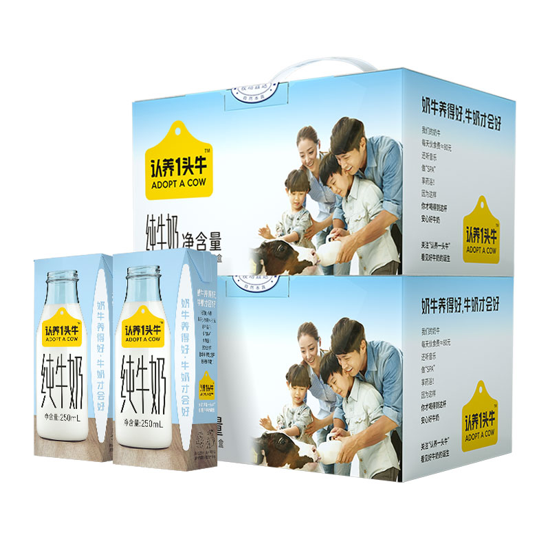 认养一头牛全脂纯牛奶250ml*12盒*2箱儿童学生早餐年货礼盒送礼