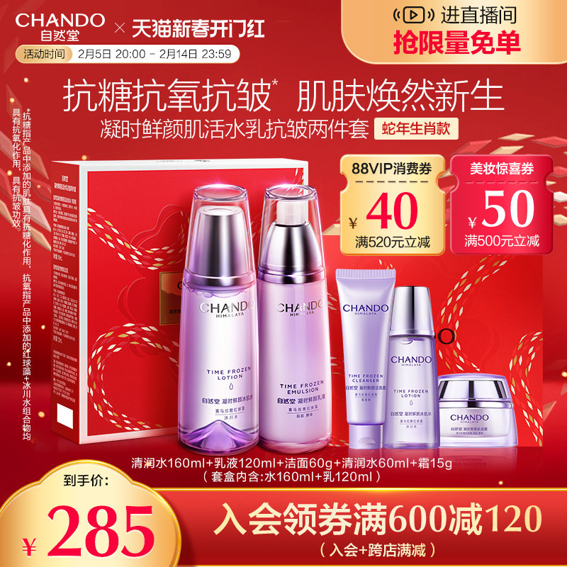 【情人节礼物】自然堂凝时鲜颜洁水乳精套装抗皱护肤礼盒女