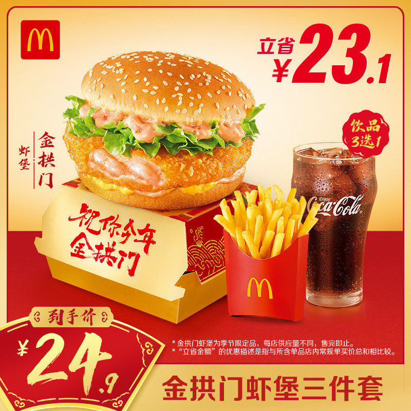 麦当劳 金拱门虾堡三件套 单次券 【下拉详情有惊喜】