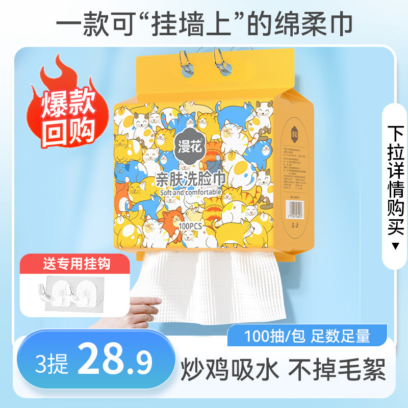 漫花悬挂式洗脸巾一次性加厚加大家庭装抽取式卸洗面面巾擦脸巾