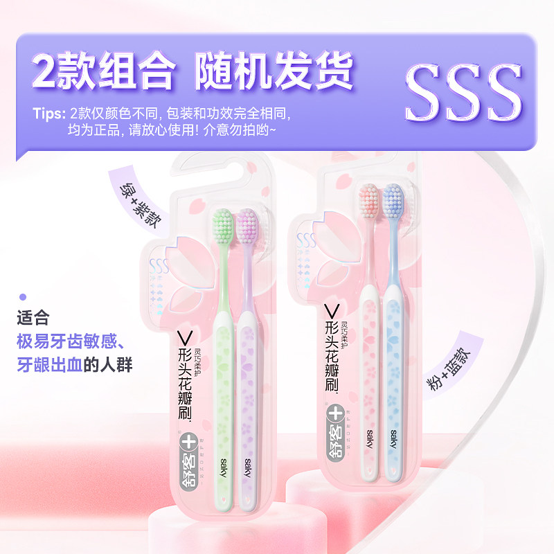 舒客樱巧柔护专业特护牙刷成人软毛牙刷情侣牙刷小刷头2支装