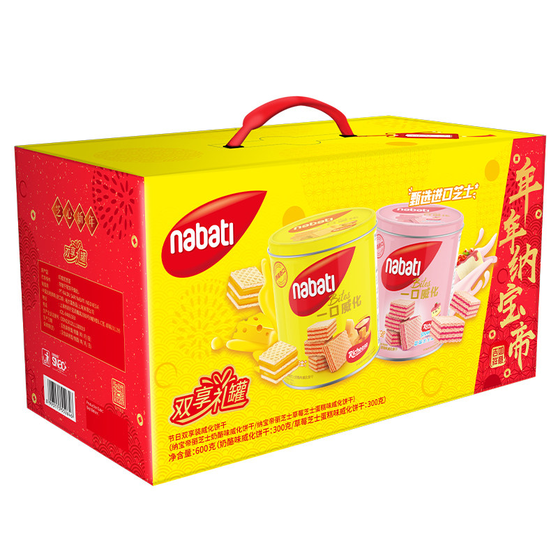 印尼进口纳宝帝丽芝士奶酪+草莓蛋糕味威化饼干600g*1盒节日礼盒