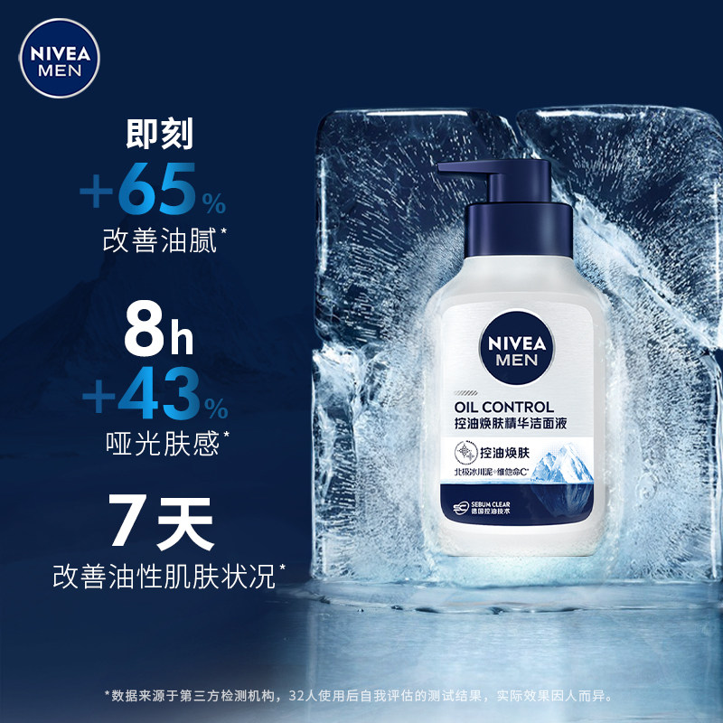 妮维雅男士控油焕肤精华洗面奶持续控油保湿润深层清洁洁面乳150g