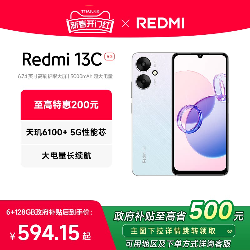 【政府补贴至高15%】Redmi 13C 5G手机智能官方旗舰店红米小米13c大音学生老年备用老人百元专用