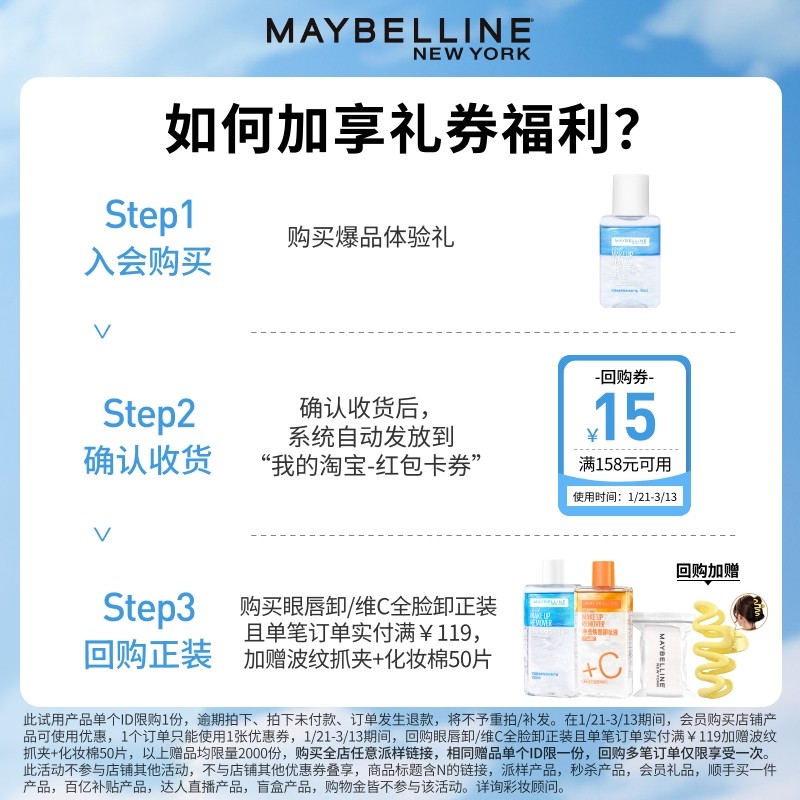 【顺手买一件】美宝莲眼唇卸妆水卸妆油40ml小样试用装旅行装N