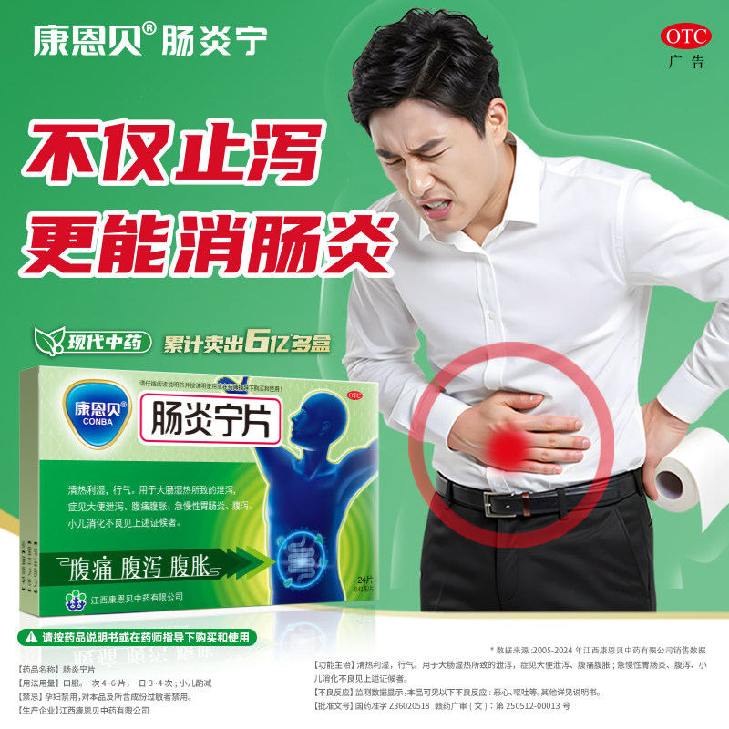 康恩贝肠炎宁片拉肚子药止泻药成人肠道调理腹泻腹胀腹痛胃肠炎药