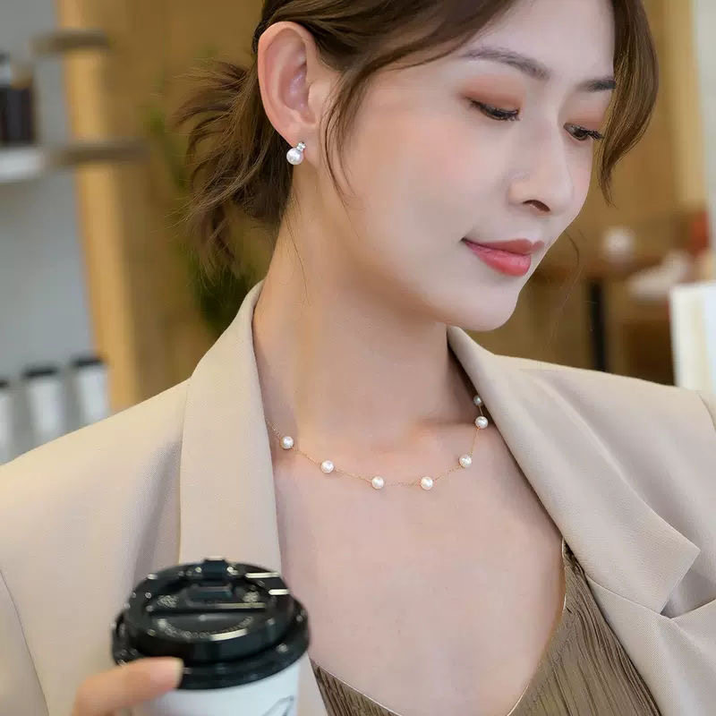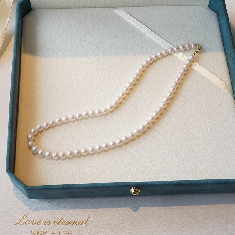 正品6mm天然珍珠项链强光淡水圆形AKOYA气质短款choker 锁骨链女